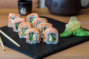 Nori, orez, somon grill, crema de branza, avocado, castraveti